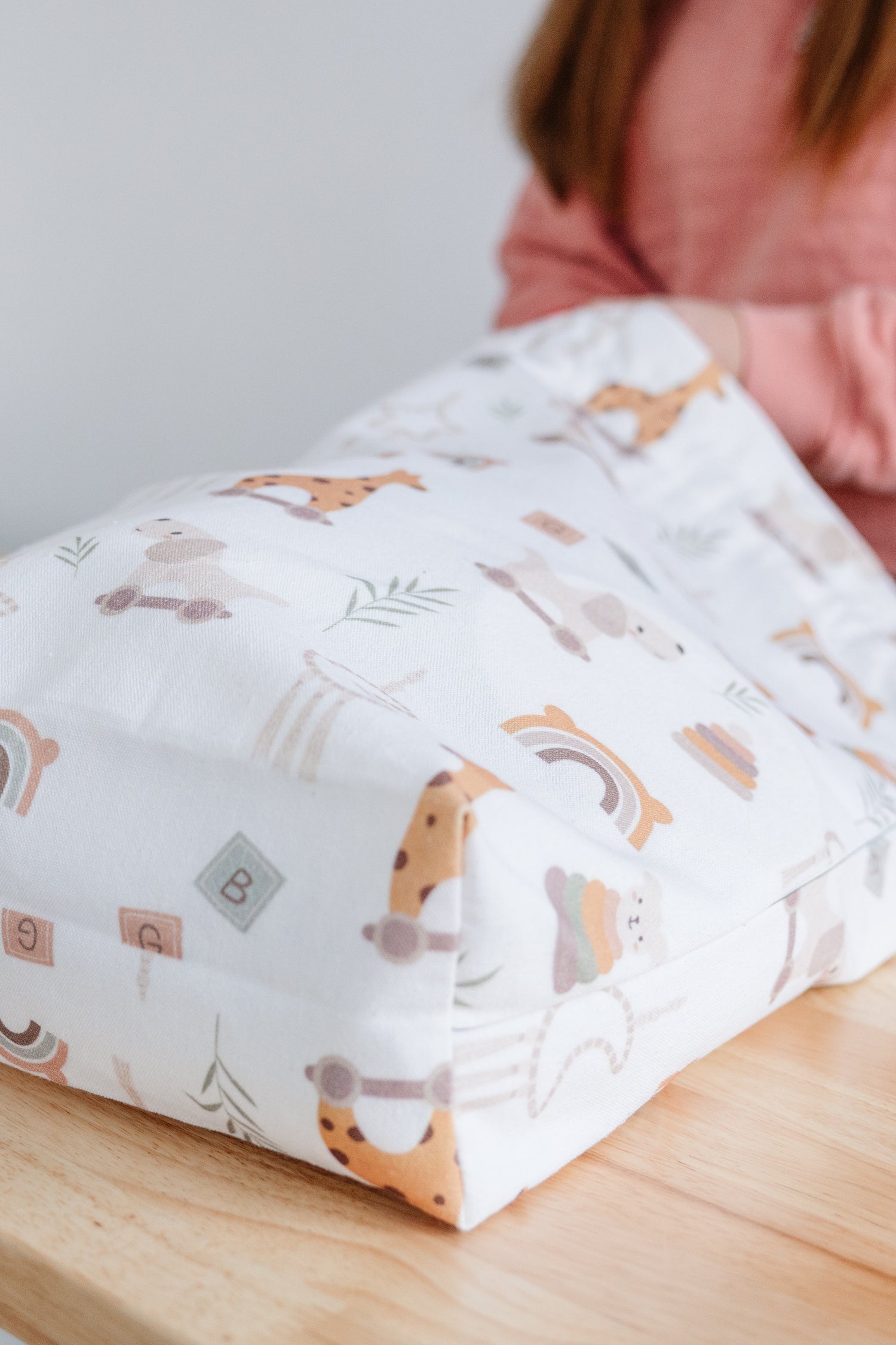 Our extra large measures 20"x22" and is great for toy storage, laundry, blankets, or diapers (think Diaper Raffle!).