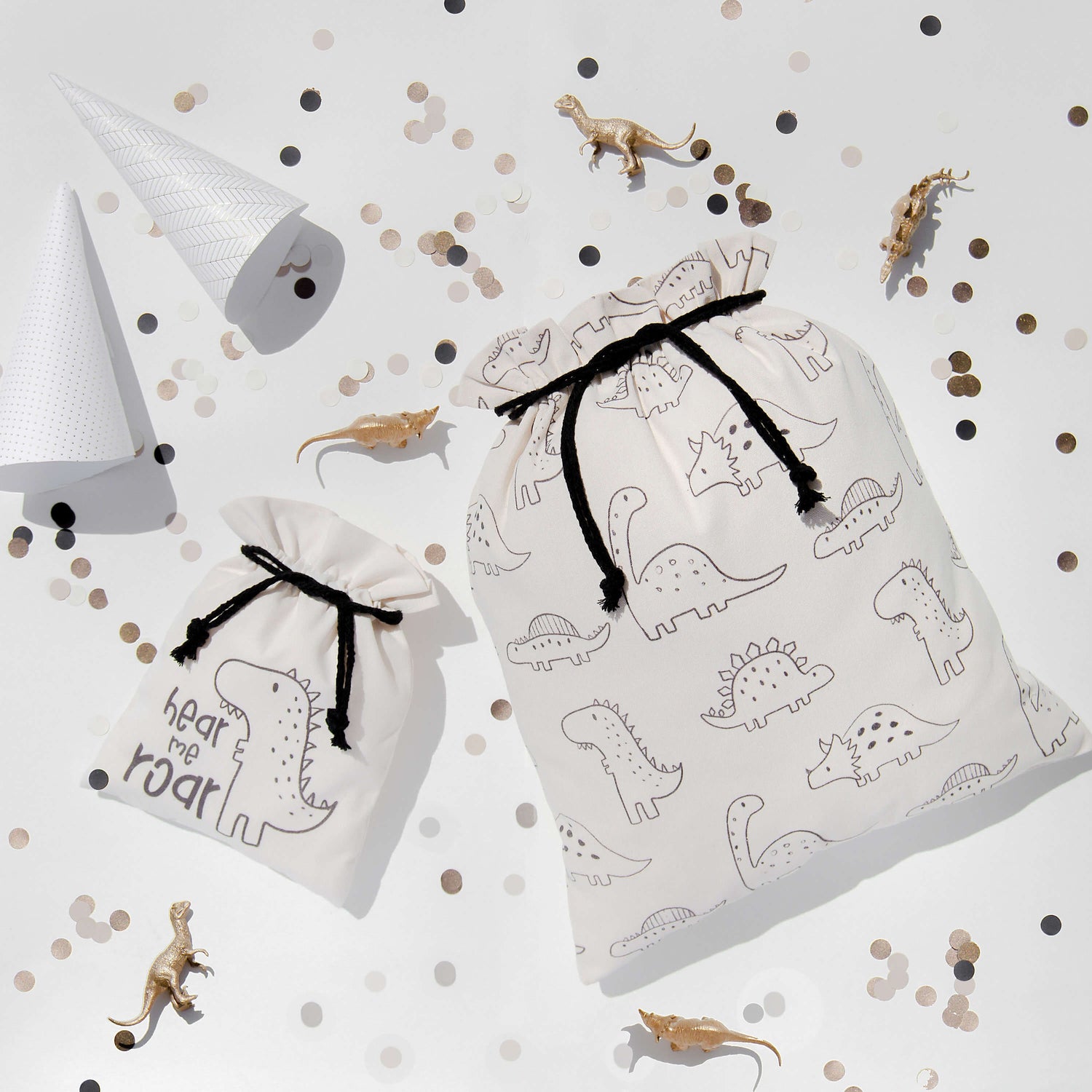 Roar into the world of epic gifting with our Dinosaur fabric gift bag – complete with a bold proclamation: 'Hear Me Roar'! This reusable marvel isn't just about dinosaurs; it's about making a statement.